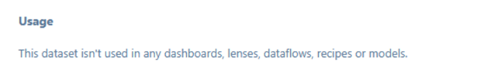 Not convinced? Let’s imagine that you get the message “This dataset isn’t used in any dashboards, lenses, dataflows, recipes or models.” so you decide this is a perfect time to refactor the recipe and change a bunch of the field names, or delete fields, or point those fields at different data. It’s fine, after all you know the dataset isn’t being used. And then the next day your colleague is confused because all of their work in progress that was stored in ‘My Private App’ has been completely broken by your dataset changes. Ouch.